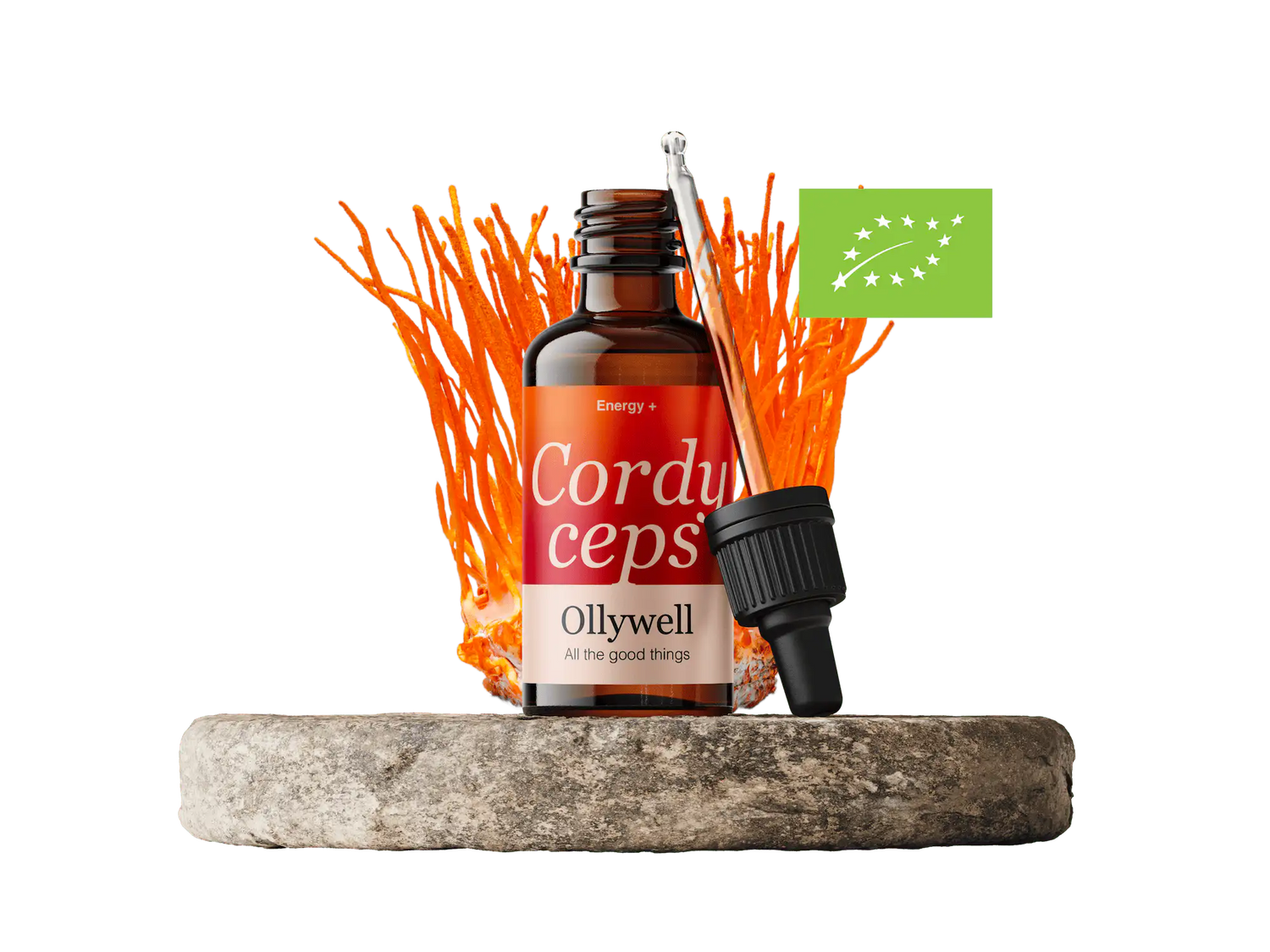Houby s certifikací EU Bio podporující úroveň energie a fyzický výkon. Pěstovány bez pesticidů a GMO v kontrolovaných podmínkách, které splňují přísné standardy ekologického zemědělství Evropské unie.