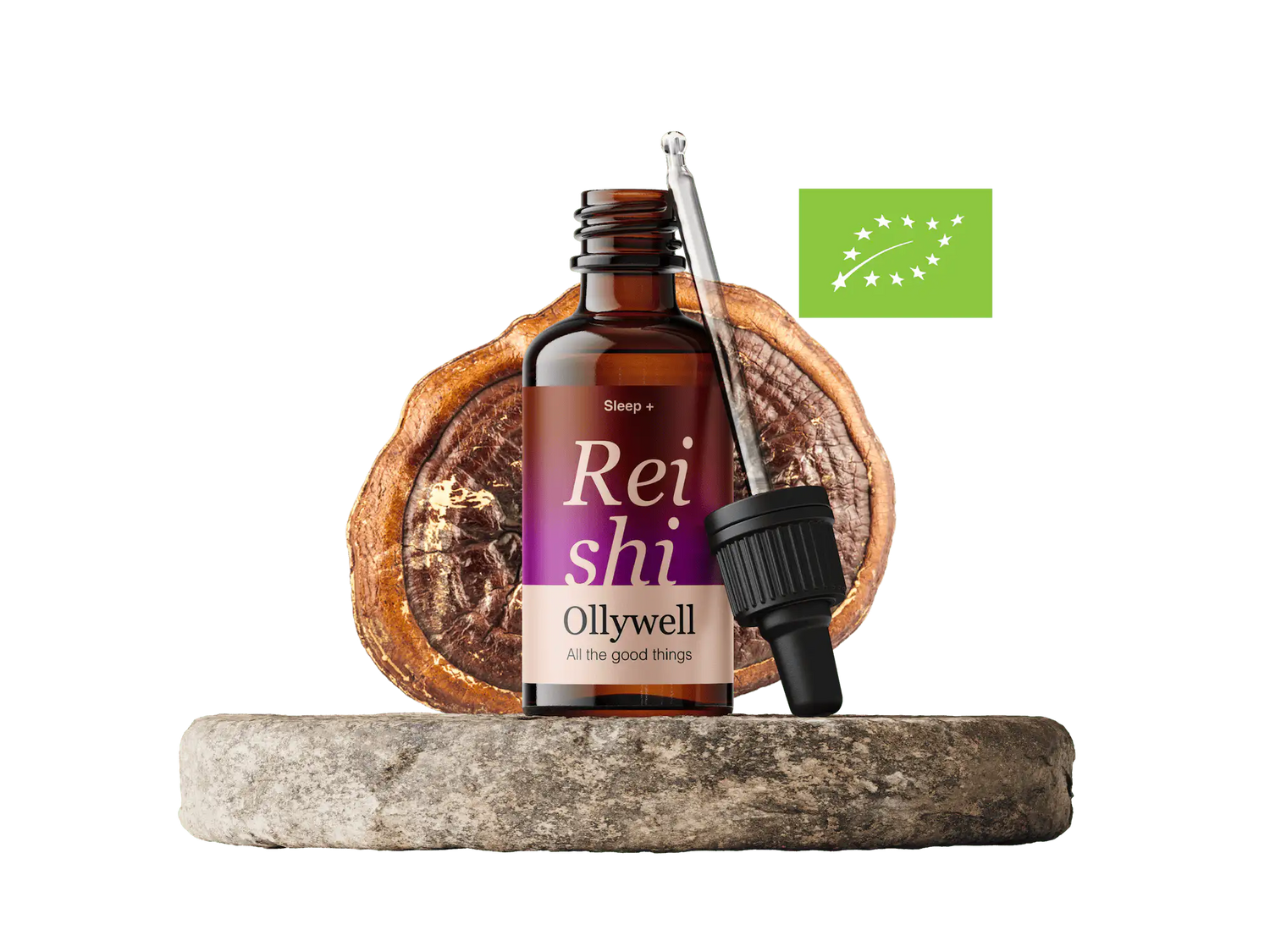 Houba s certifikací EU Organic podporující snížení stresu, kvalitu spánku a imunitní funkce. Pěstováno bez pesticidů a GMO v kontrolovaných podmínkách, které splňují přísné standardy ekologického zemědělství Evropské unie.